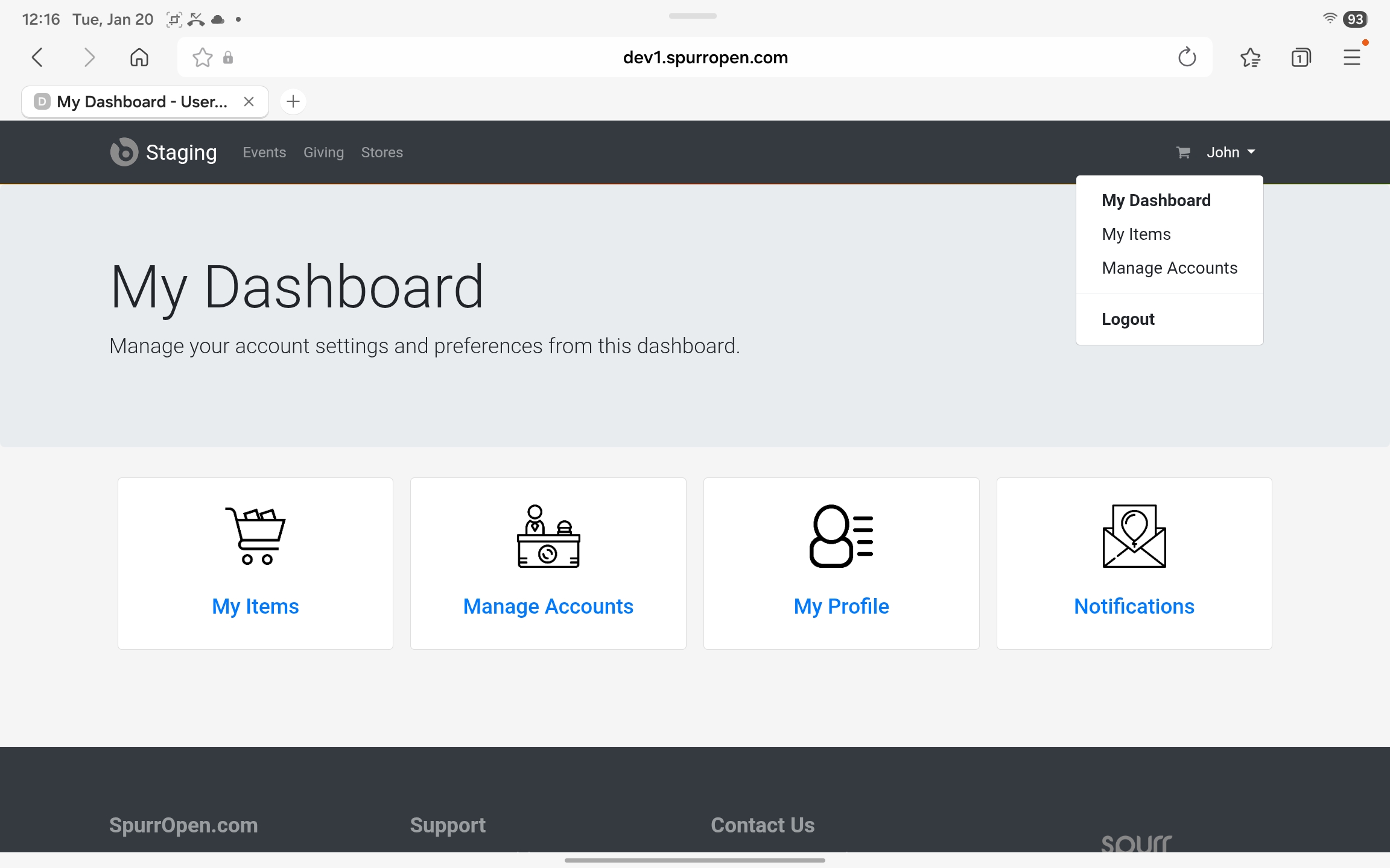 Once your SpurrOpen account has been created, you can log in and access your dashboard to manage your account, items, and settings.